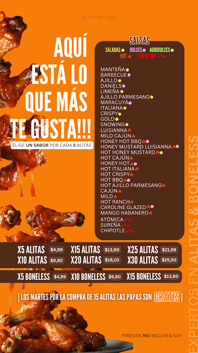 Welcome to Roll Wings, a culinary gem located in Manta, Ecuador. This trendy establishment has quickly made a name for itself with its mouthwatering offerings, especially their renowned chicken wings. Diners rave about the delicious flavors and generous portions that promise a satisfying experience without breaking the bank.